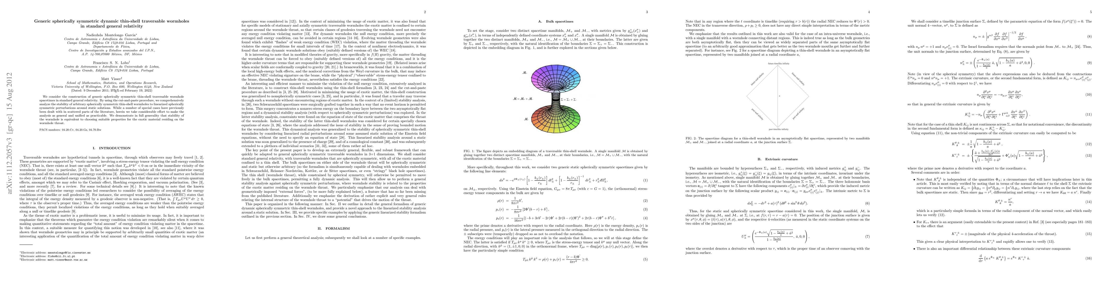 This paper constructs generic spherically symmetric thin-shell traversable wormholes in standard general relativity and analyzes their stability against perturbations. It concludes that wormhole stability is contingent on the properties of the exotic material on the throat.