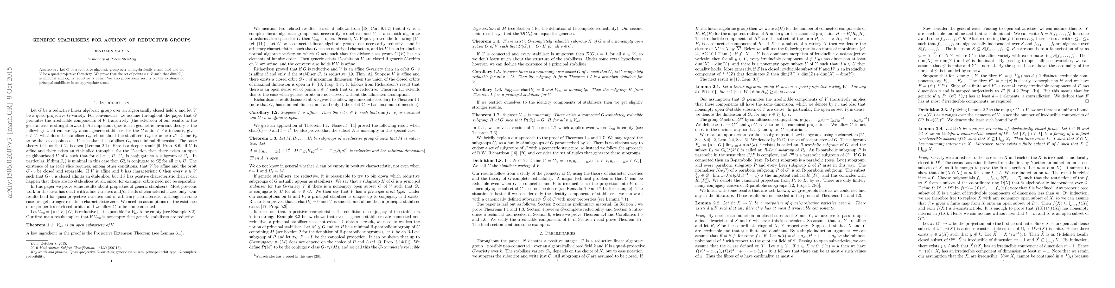 This research establishes that for a reductive algebraic group G over an algebraically closed field and a quasi-projective G-variety V, the set of points v in V, where G_v (stabilizer subgroup) is minimal and reductive, forms an open subset. The paper further explores the existence of principal stabilizers under certain conditions.