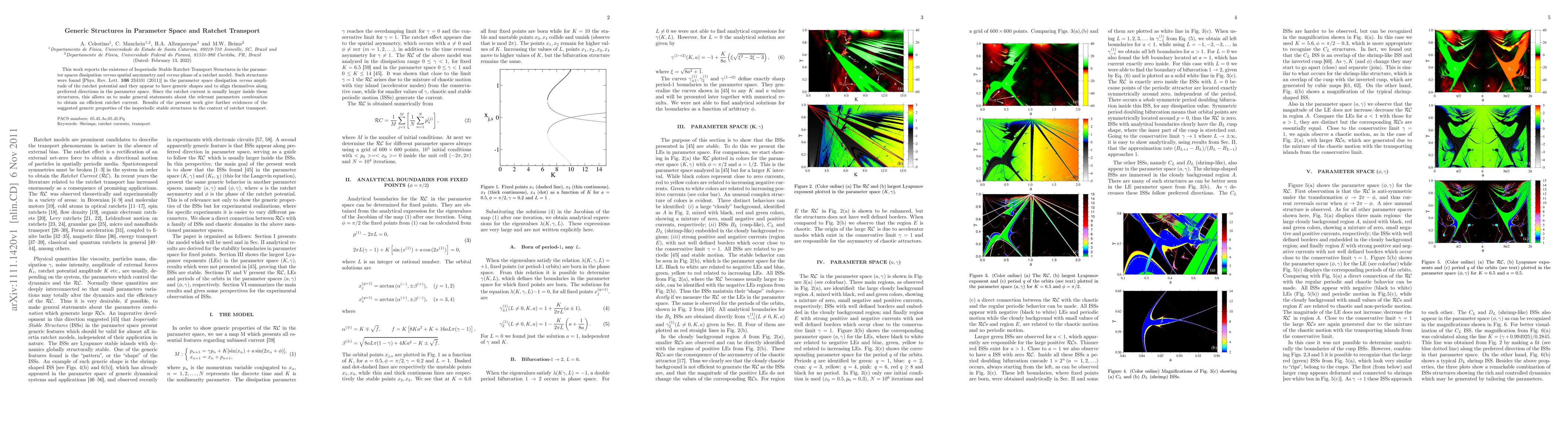 This research identifies Isoperiodic Stable Ratchet Transport Structures in parameter spaces of dissipation versus spatial asymmetry and phase of a ratchet model, revealing generic shapes and preferred alignments that enhance the ratchet current. These findings provide further evidence for the generic properties of such structures in ratchet transport.