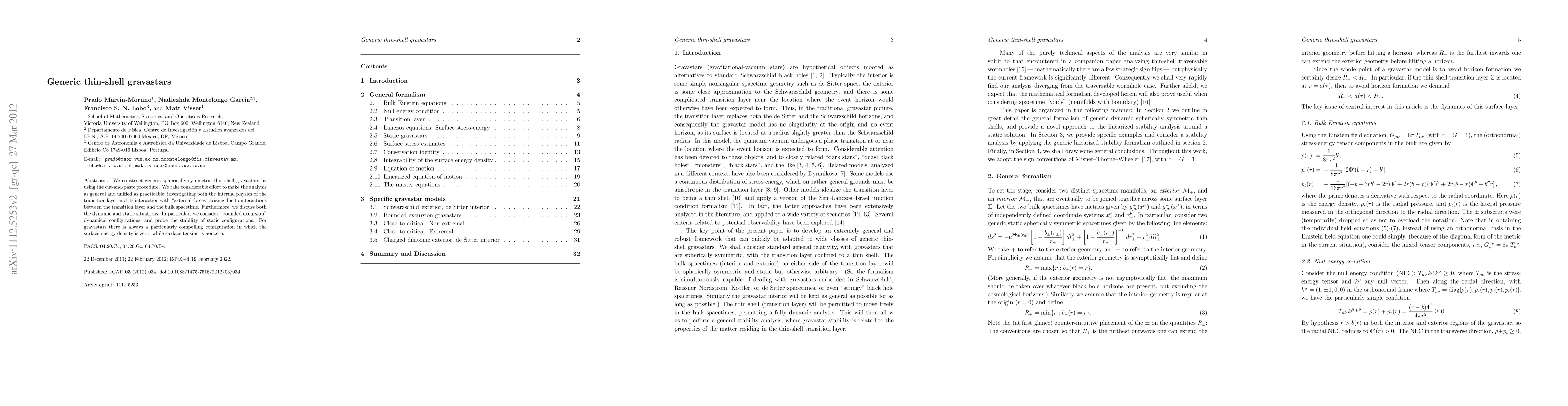 This paper constructs generic thin-shell gravastars using a cut-and-paste procedure, examining both internal transition layer physics and external spacetime interactions. It investigates dynamic and static configurations, including bounded dynamical scenarios and stability of static ones, highlighting gravastars with zero surface energy density but nonzero surface tension.
