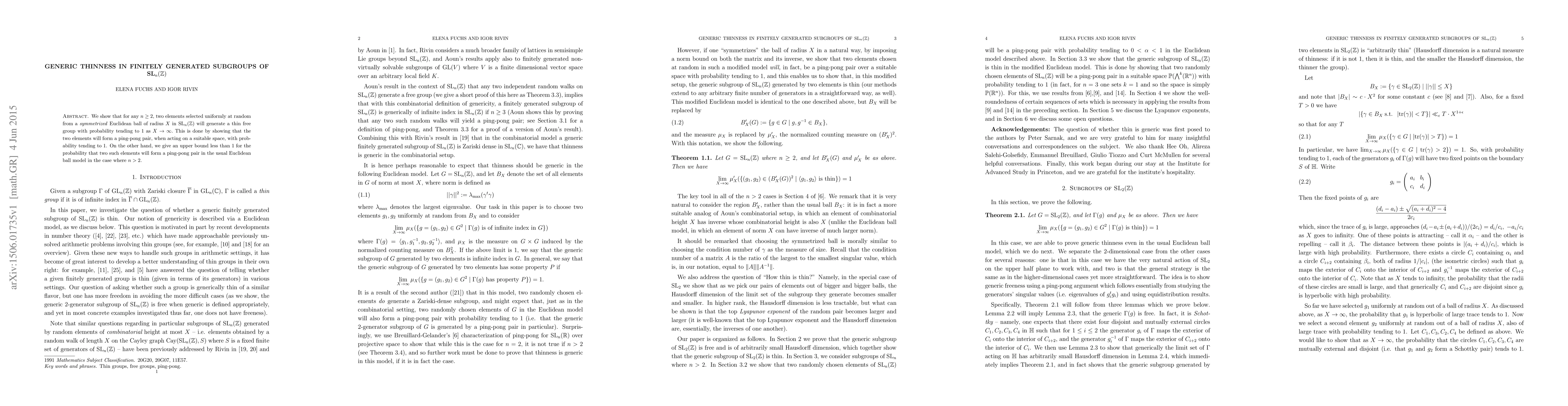 Researchers show that two randomly chosen elements from a symmetrized Euclidean ball in SL_n(Z) will generate a thin free group with high probability as the radius increases.