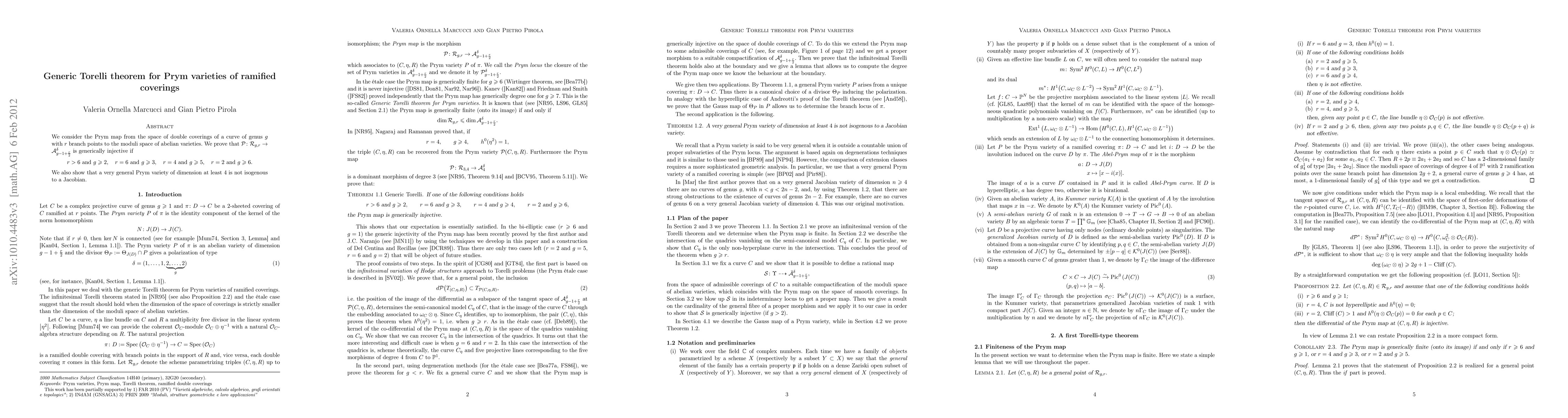 This paper proves the generic injectivity of the Prym map for double coverings of curves with specified branch points and genera, and demonstrates that a very generic Prym variety of dimension at least 4 is not isogenous to a Jacobian.