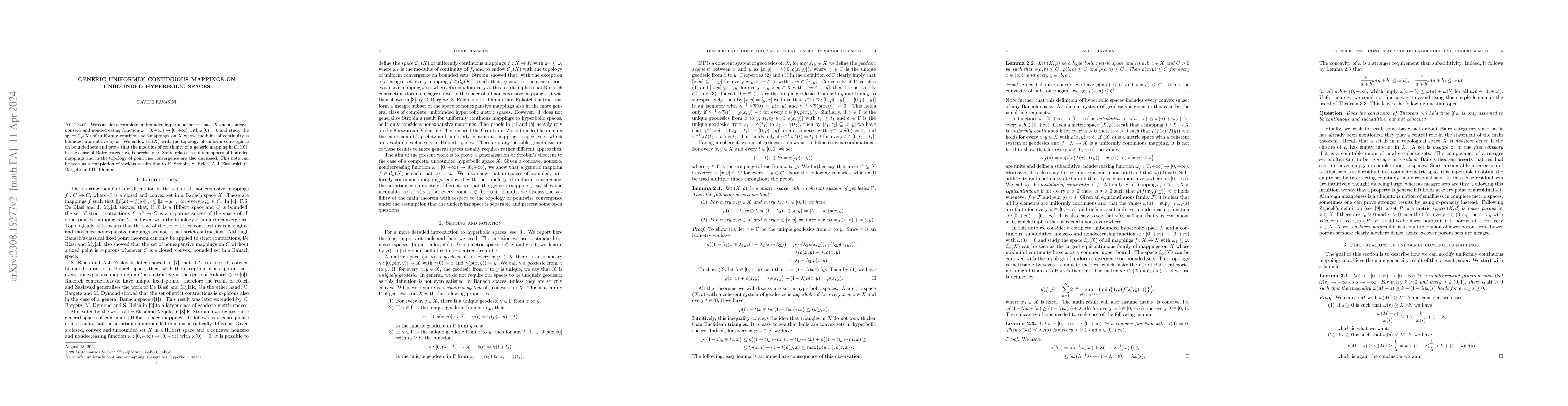 This paper studies uniformly continuous mappings on unbounded hyperbolic spaces with a modulus of continuity bounded by a given function $\omega$. It shows that the generic mapping in this space has the exact continuity modulus $\omega$ and discusses related results in the context of bounded mappings and pointwise convergence.