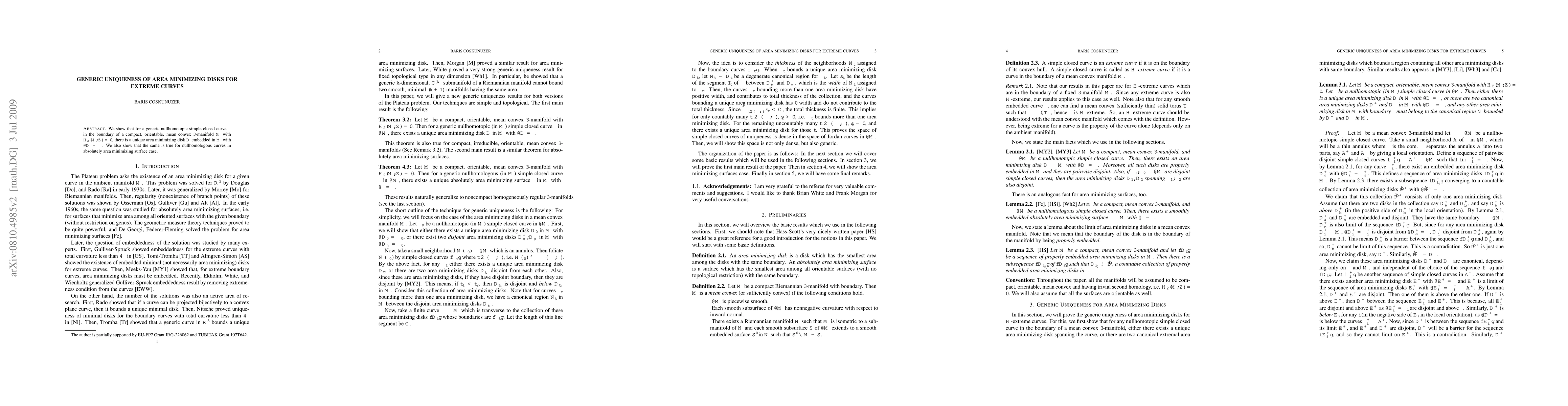 This paper demonstrates the uniqueness of area minimizing disks embedded in a mean convex 3-manifold, where the boundary of the disk follows a generic nullhomotopic simple closed curve. It also extends the result to absolutely area minimizing surfaces.