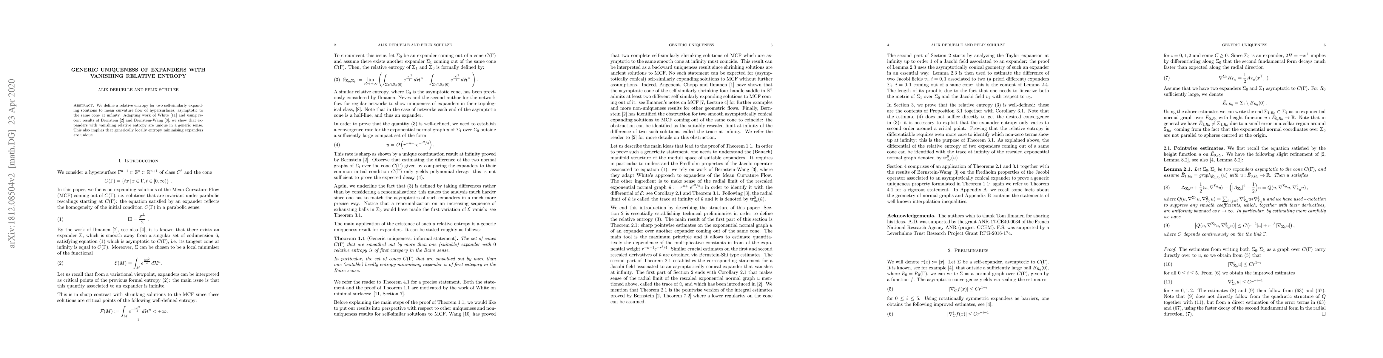This paper establishes the generic uniqueness of expanders with vanishing relative entropy in the context of mean curvature flow of hypersurfaces. By adapting previous work and leveraging recent results, it demonstrates that such expanders are unique, implying the same for locally entropy minimising expanders.