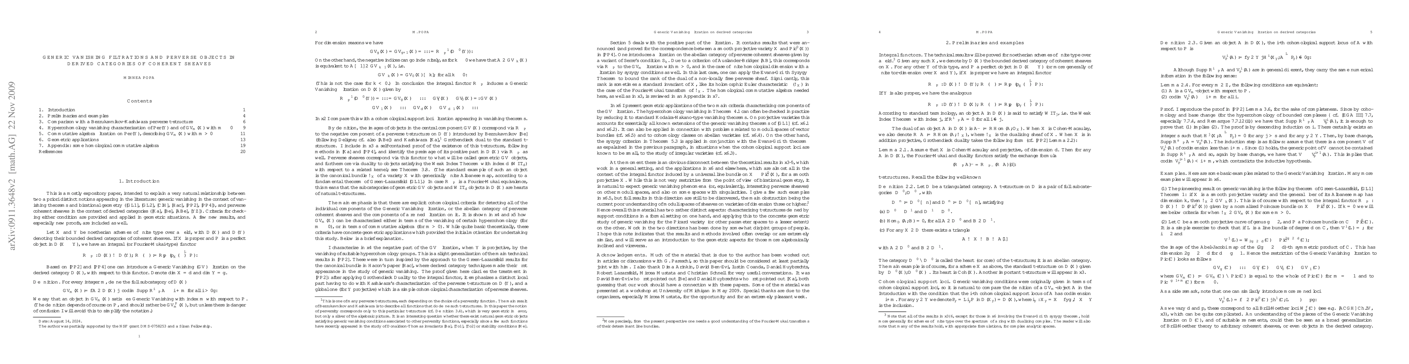 This is a mostly expository paper, intended to explain a very natural relationship between two a priori distinct notions appearing in the literature: Generic Vanishing in the context of vanishing theorems and birational geometry, and Perverse Coherent Sheaves in the context of derived categories. I describe homological and commutative algebra criteria for checking either condition, and then recall applications to geometric situations. A few new results, and especially new proofs, are included as well.