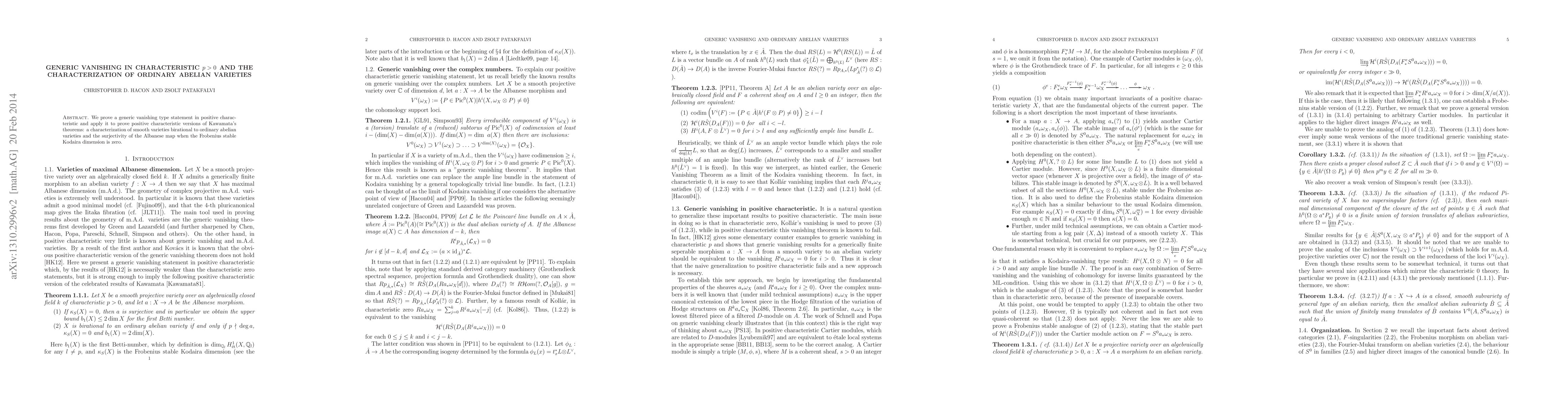 Summary: This paper establishes a generic vanishing result in positive characteristic and utilizes it to characterize smooth varieties birational to ordinary abelian varieties, as well as proving the surjectivity of the Albanese map under certain conditions.