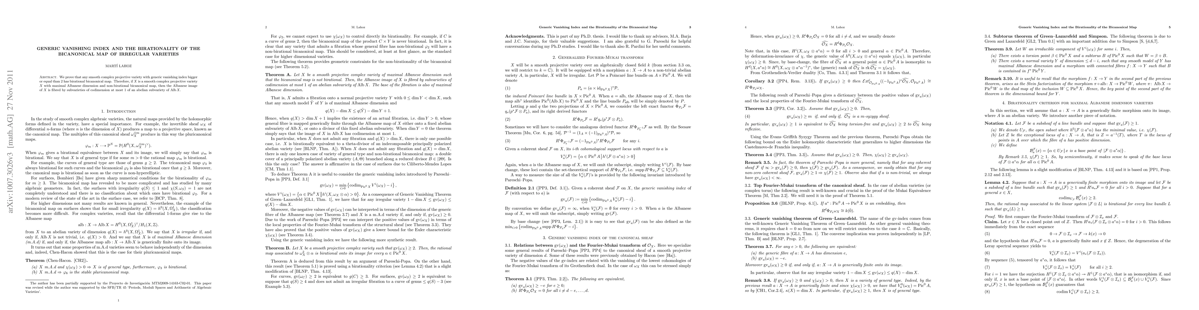 We prove that any smooth complex projective variety with generic vanishing index bigger or equal than 2 has birational bicanonical map. Therefore, if X is a smooth complex projective variety X with maximal Albanese dimension and non-birational bicanonical map, then the Albanese image of X is fibered by subvarieties of codimension at most 1 of an abelian subvariety of Alb X.