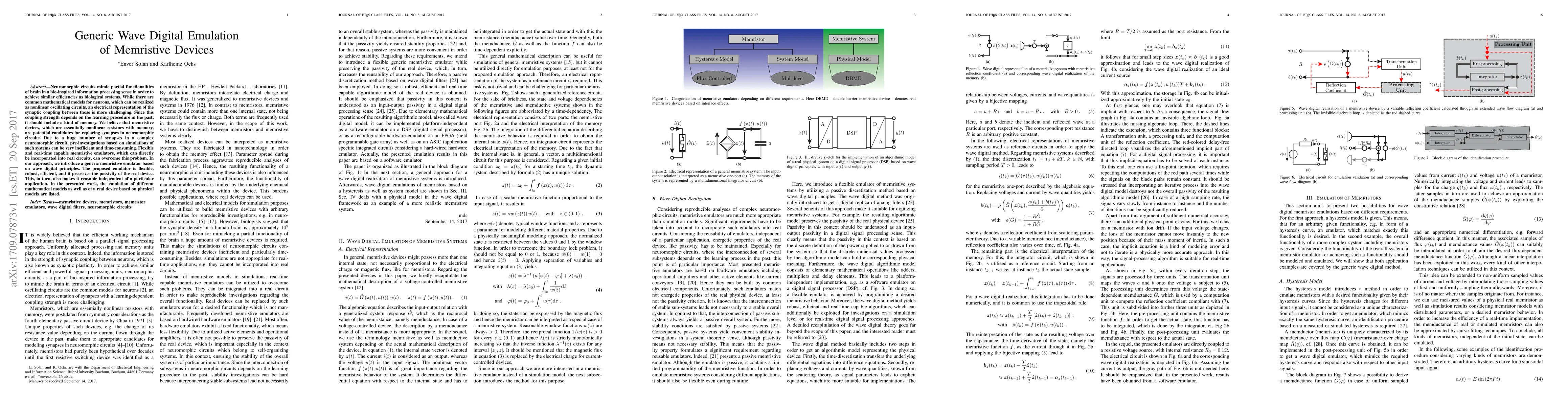 This paper introduces a generic wave digital emulator for memristive devices, which can replace synaptic couplings in neuromorphic circuits. The proposed emulator is flexible, robust, and efficient, preserving the passivity of real devices, thus making it reusable across various applications.