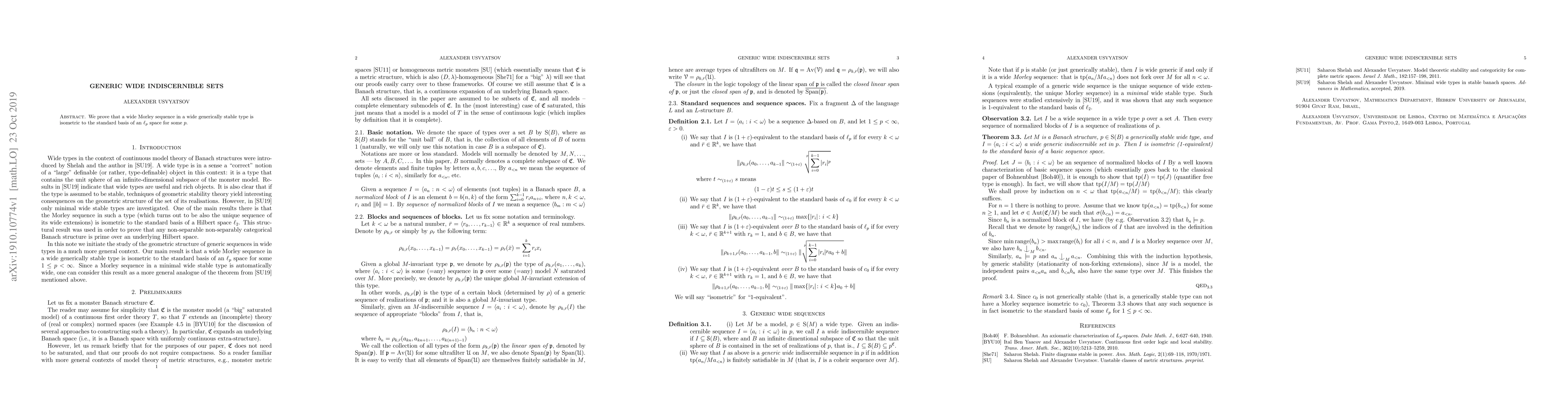 We prove that a wide Morley sequence in a wide generically stable type is isometric to the standard basis of an $\ell_p$ space for some $p$.