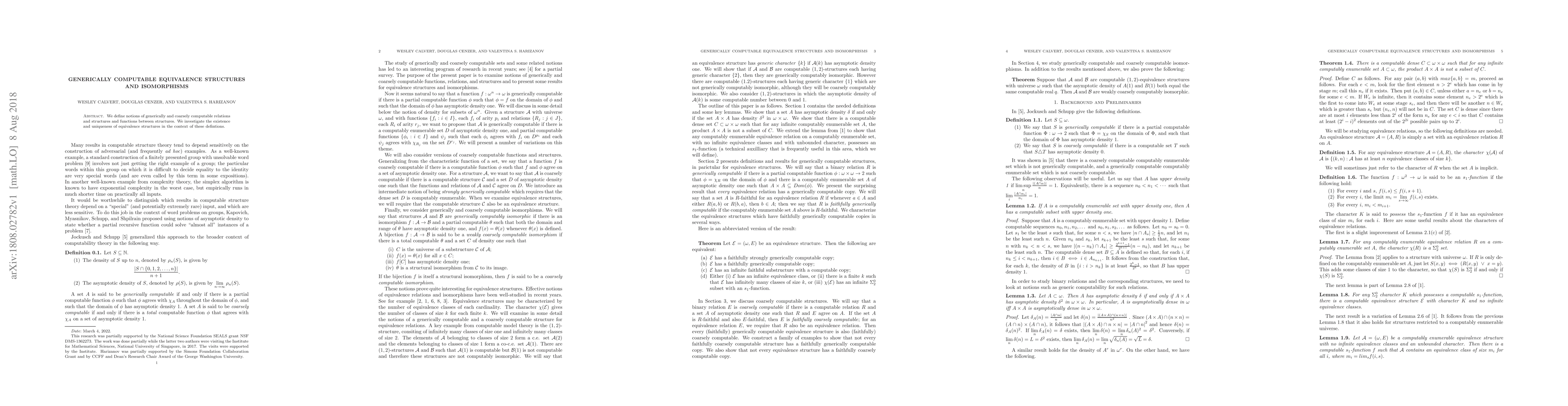 This paper introduces the concepts of generically and coarsely computable relations and structures, and explores the existence and uniqueness of equivalence structures under these definitions. The focus is on determining how these computable structures can serve as isomorphisms between different mathematical entities.