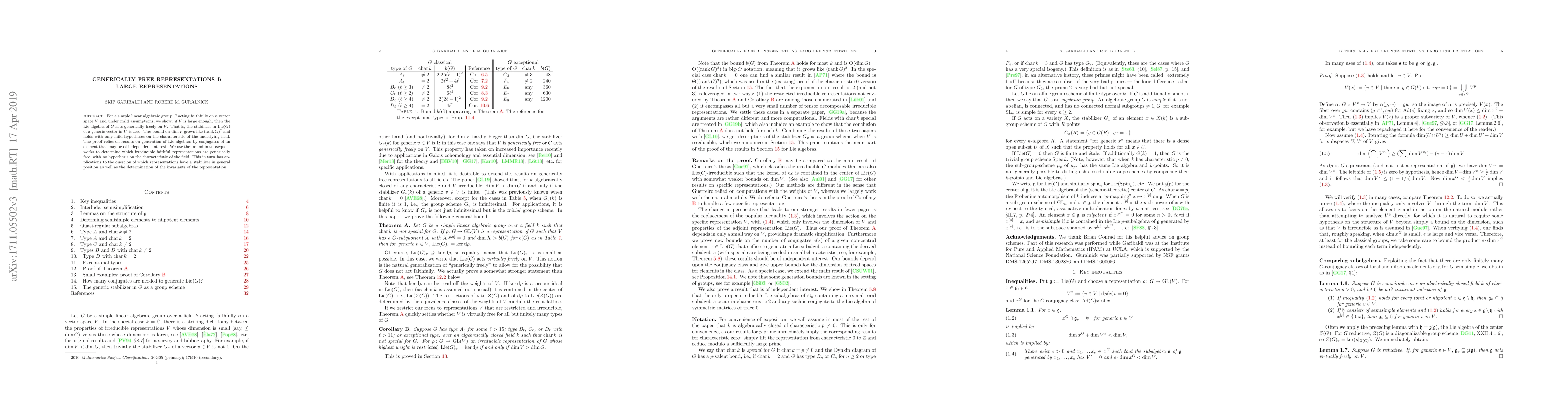 Researchers prove that for large enough vector spaces, a specific Lie algebra acts generically freely on them, meaning the stabilizer of a generic vector is zero.