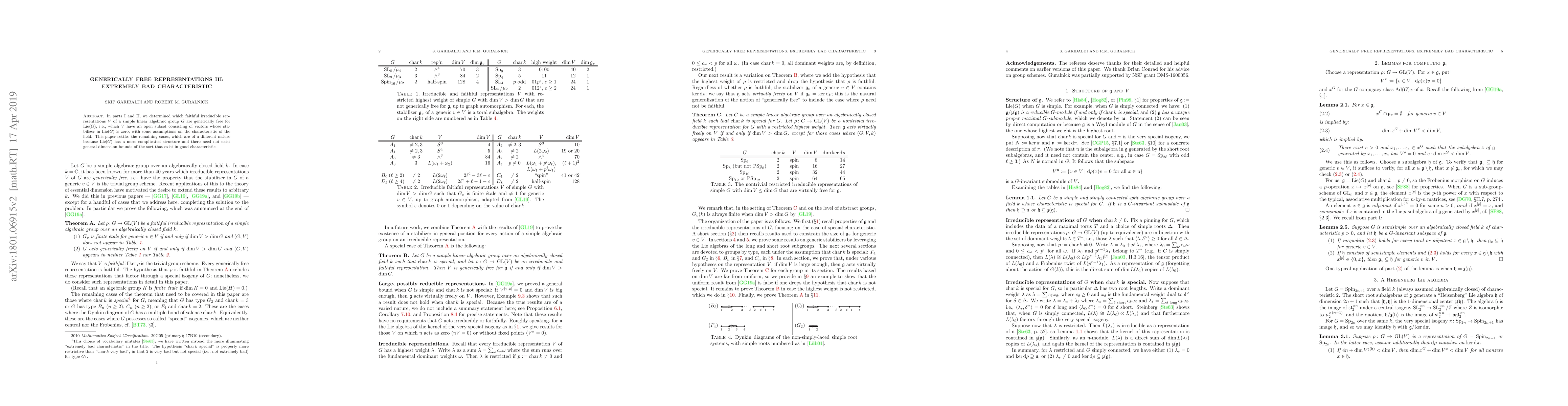 This paper resolves cases of generically free representations for simple linear algebraic groups in bad characteristic, which differ from those in good characteristic due to the group's structure.