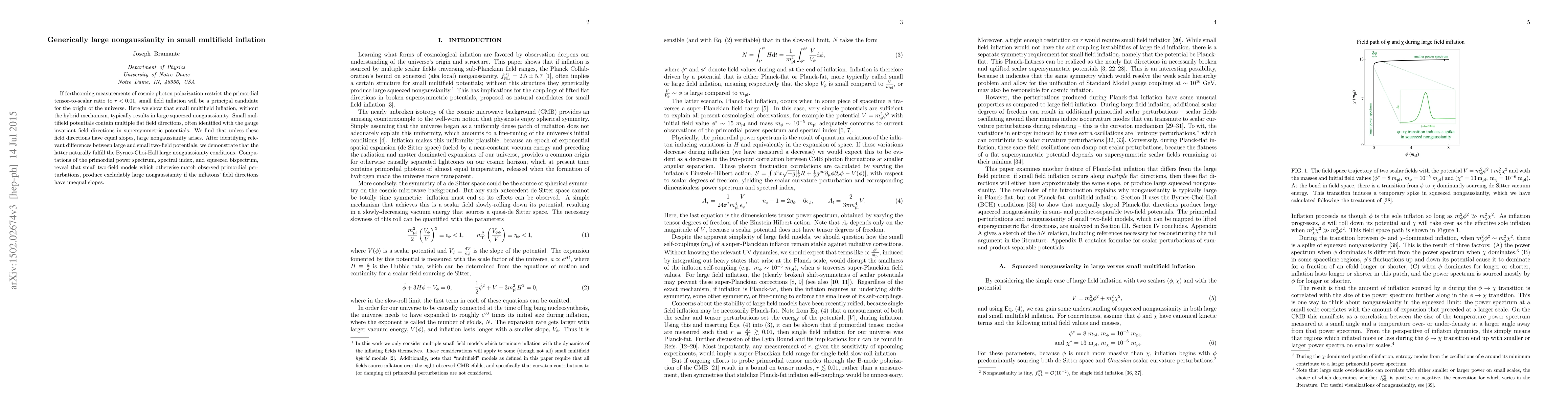 If forthcoming measurements of cosmic photon polarization restrict the primordial tensor-to-scalar ratio to $r < 0.01$, small field inflation will be a principal candidate for the origin of the universe. Here we show that small multifield inflation, without the hybrid mechanism, typically results in large squeezed nongaussianity. Small multifield potentials contain multiple flat field directions, often identified with the gauge invariant field directions in supersymmetric potentials. We find that unless these field directions have equal slopes, large nongaussianity arises. After identifying relevant differences between large and small two-field potentials, we demonstrate that the latter naturally fulfill the Byrnes-Choi-Hall large nongaussianity conditions. Computations of the primordial power spectrum, spectral index, and squeezed bispectrum, reveal that small two-field models which otherwise match observed primordial perturbations, produce excludably large nongaussianity if the inflatons' field directions have unequal slopes.