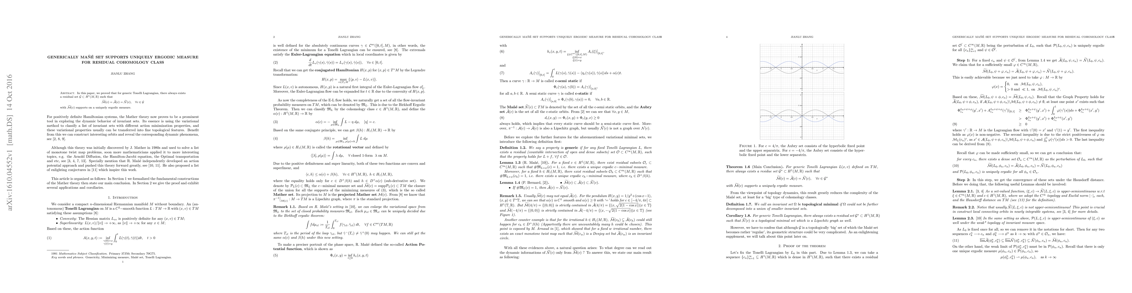 Research proves that for generic Tonelli Lagrangian systems, there exists a residual set where the measures of momentum conservation, action minimization, and Hamiltonian flow coincide, resulting in uniquely ergodic measure support.