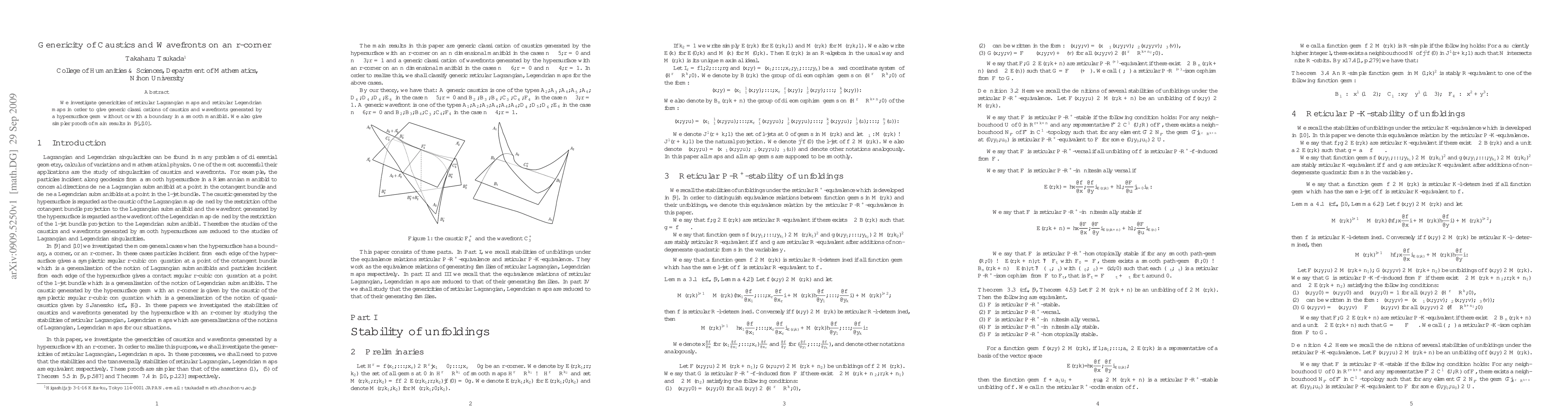 Researchers investigate genericity of caustics and wavefronts in smooth manifolds, aiming to classify them based on reticular Lagrangian and Legendrian maps without or with boundaries.
