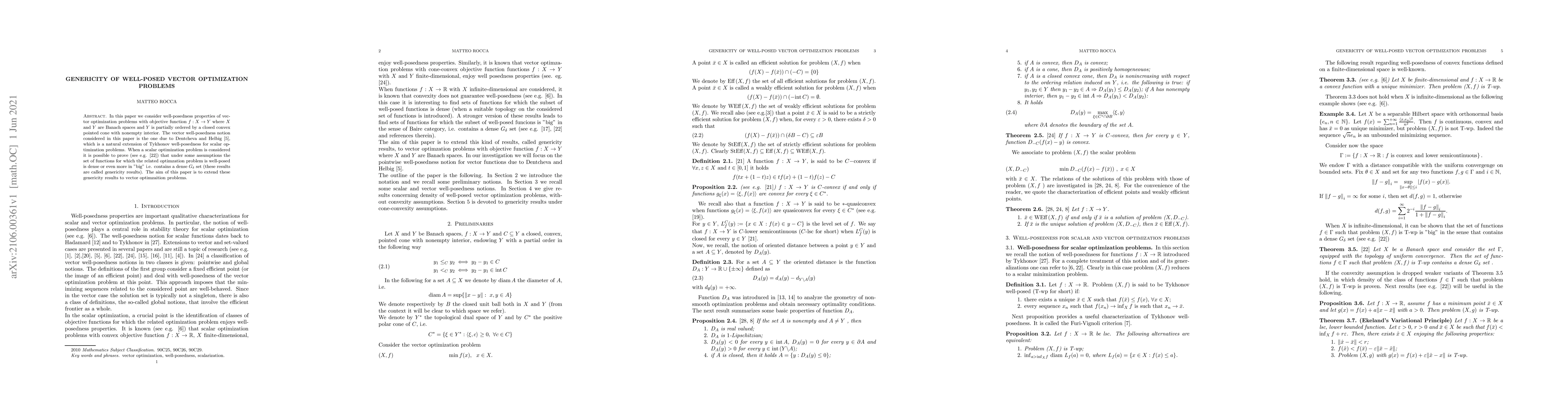 This paper investigates the well-posedness of vector optimization problems, extending genericity results from scalar optimization to vector cases. It finds that under certain assumptions, many functions make the related optimization problem well-posed, containing dense G_{ heta} sets.