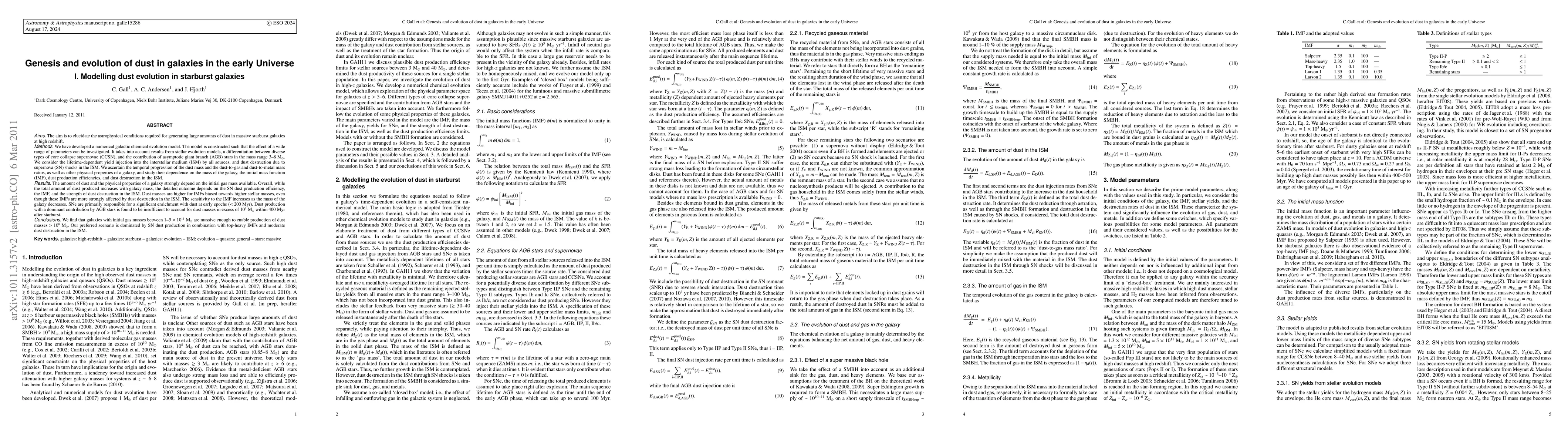 We have developed a numerical galactic chemical evolution model. The model is constructed such that the effect of a wide range of parameters can be investigated. It takes into account results from stellar evolution models, a differentiation between diverse types of core collapse SNe and the contribution of AGB stars in the mass range 3-8 Msun. We consider the lifetime-dependent yield injection into the ISM by all sources as well as dust destruction due to SN shocks in the ISM. We ascertain the temporal progression of the dust mass, the dust-to-gas and dust-to-metal mass ratios as well as other physical properties of a galaxy and study their dependence on the mass of the galaxy, the IMF, dust production efficiencies and dust destruction in the ISM. The amount of dust and the physical properties of a galaxy strongly depend on the initial gas mass available. Overall, while the total amount of dust produced increases with galaxy mass, the detailed outcome depends on the SN dust production efficiency, the IMF and the strength of dust destruction in the ISM. Dust masses are higher for IMFs biased towards higher stellar masses, despite the fact that these IMFs are more strongly affected by dust destruction in the ISM. The sensitivity to the IMF increases as the mass of the galaxy decreases. SNe are primarily responsible for a significant enrichment with dust at early epochs (< 200 Myr). Dust production with a dominant contribution by AGB stars is found to be insufficient to account for dust masses in excess of 10^8 Msun within 400 Myr after starburst. We find that galaxies with initial gas masses between 1-5 x 10^11 Msun are sufficiently massive to enable production of dust masses >10^8 Msun. Our preferred scenario is dominated by SN dust production in combination with top-heavy IMFs and moderate dust destruction in the ISM.