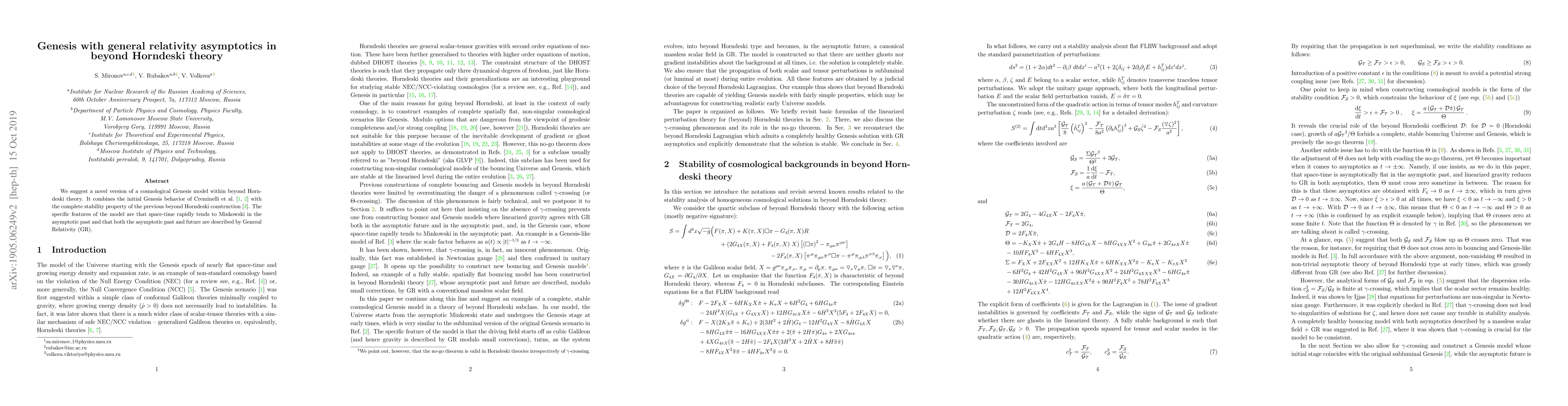 We suggest a novel version of a cosmological Genesis model within beyond Horndeski theory. It combines the initial Genesis behavior of Creminelli et al. [arXiv:1007.0027, arXiv:1209.3768] with complete stability property of the previous beyond Horndeski construction [arXiv:1705.06626]. The specific features of the model are that space-time rapidly tends to Minkowski in asymptotic past and that both asymptotic past and future are described by General Relativity (GR).