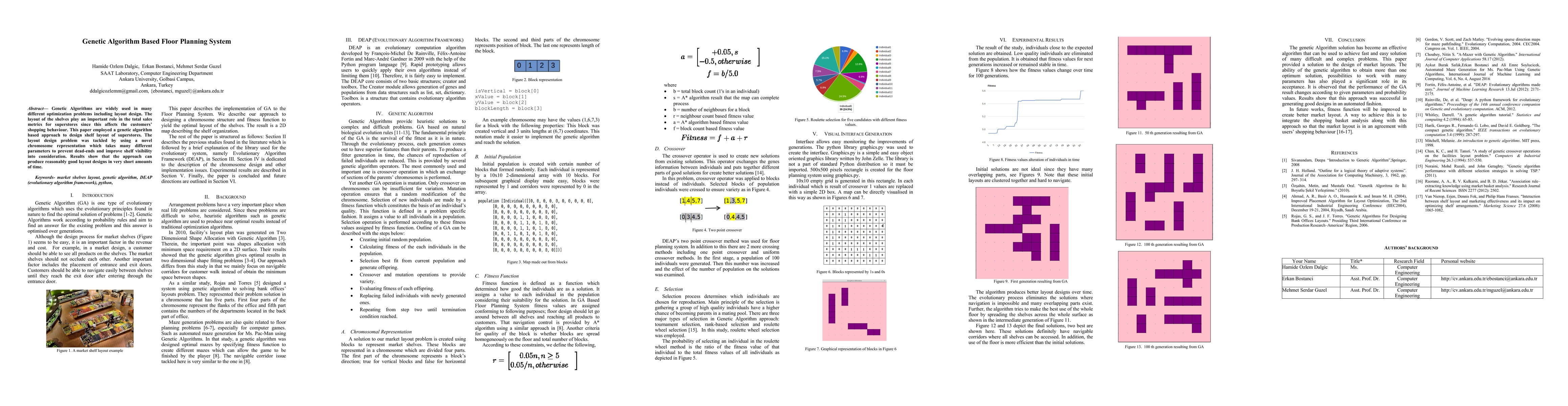 This paper uses a genetic algorithm to optimize the shelf layout in superstores, employing a novel chromosome representation to enhance visibility and prevent dead-ends. The results indicate that the method efficiently generates effective layouts in minimal time.
