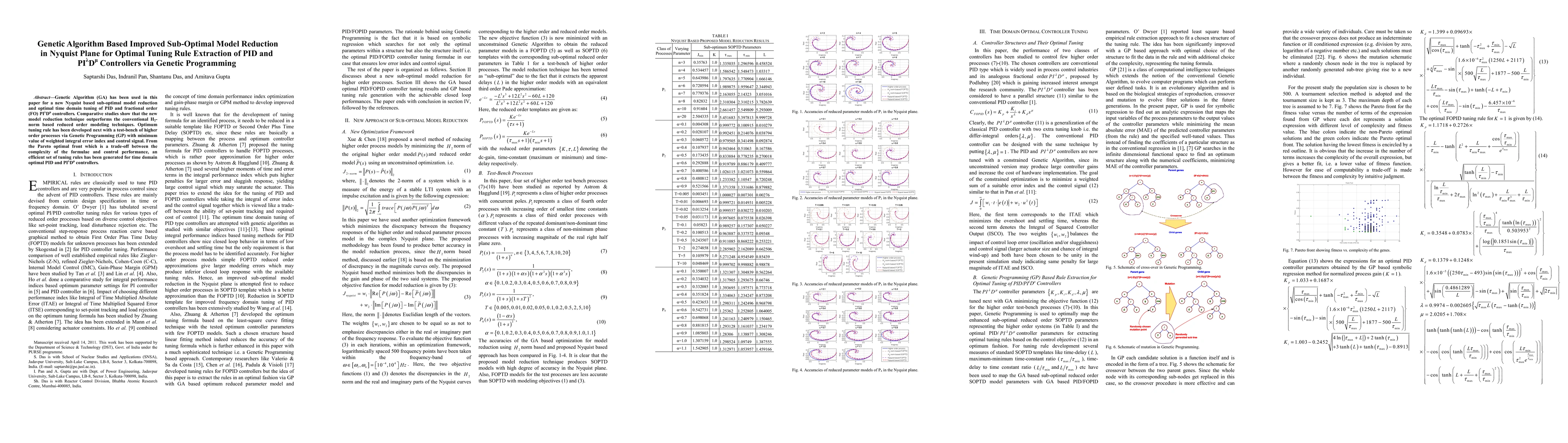 This paper employs a Genetic Algorithm to enhance sub-optimal model reduction in the Nyquist plane, optimizing PID and fractional PIλDμ controllers. The proposed method outperforms traditional H2-norm techniques, and Genetic Programming is used to derive efficient tuning rules minimizing error and control signal complexity.