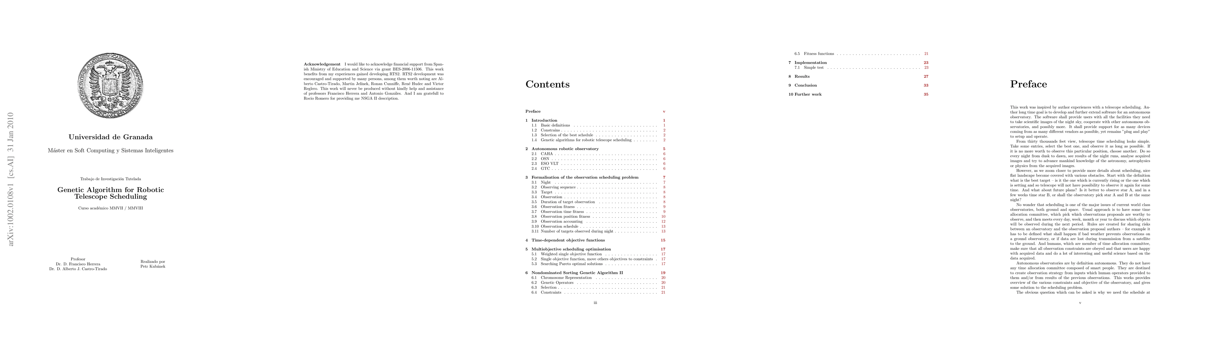 The use of Pareto optimality search genetalgorithm for telescopes scheduling is novel and different from existing research