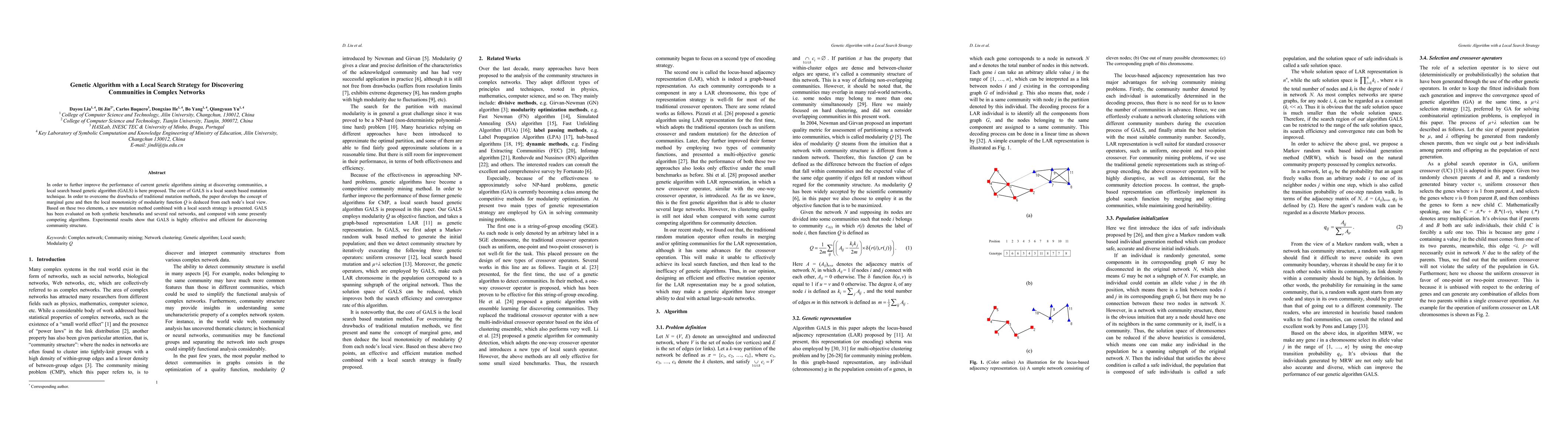 This paper proposes a local search based genetic algorithm (GALS) for discovering communities in complex networks, employing a novel mutation technique that leverages marginal genes and local monotonicity of modularity function Q. Experimental results demonstrate GALS's effectiveness and efficiency compared to existing algorithms on both synthetic and real-world networks.