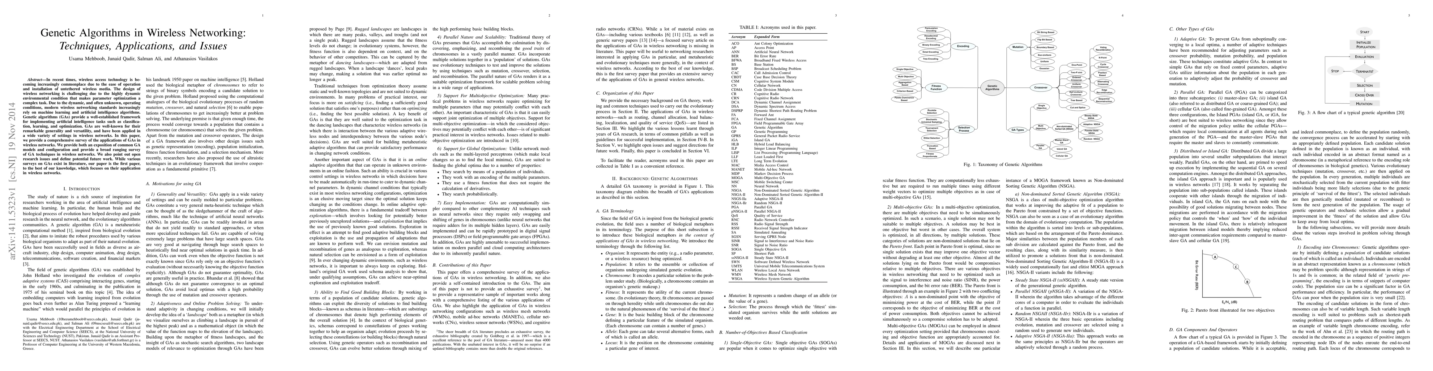 The study aims to provide a well-rounded understanding of GAs in wireless networks, shedding light on their versatility and adaptability in optimizing performance under dynamic environmental conditions.