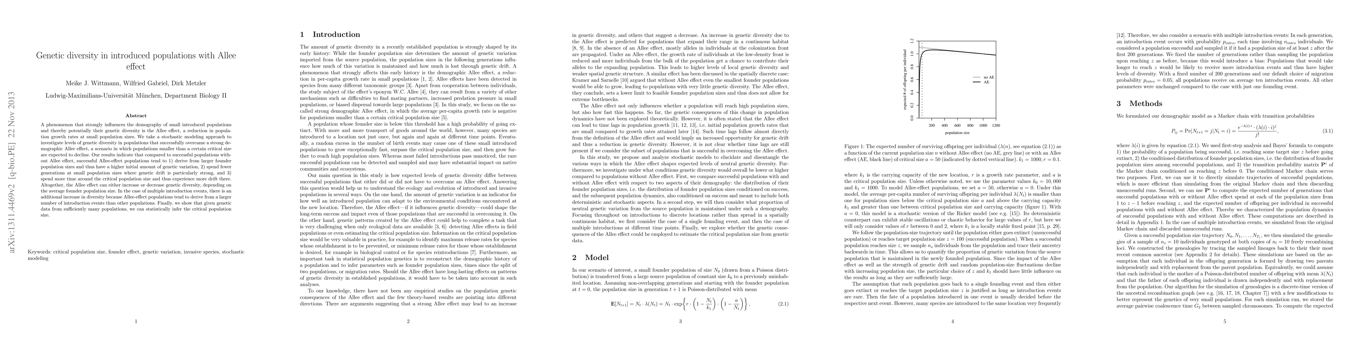The study uses a stochastic modeling approach to investigate genetic diversity in introduced populations subject to an Allee effect, focusing on demographic scenarios where populations smaller than a critical size are expected to decline.