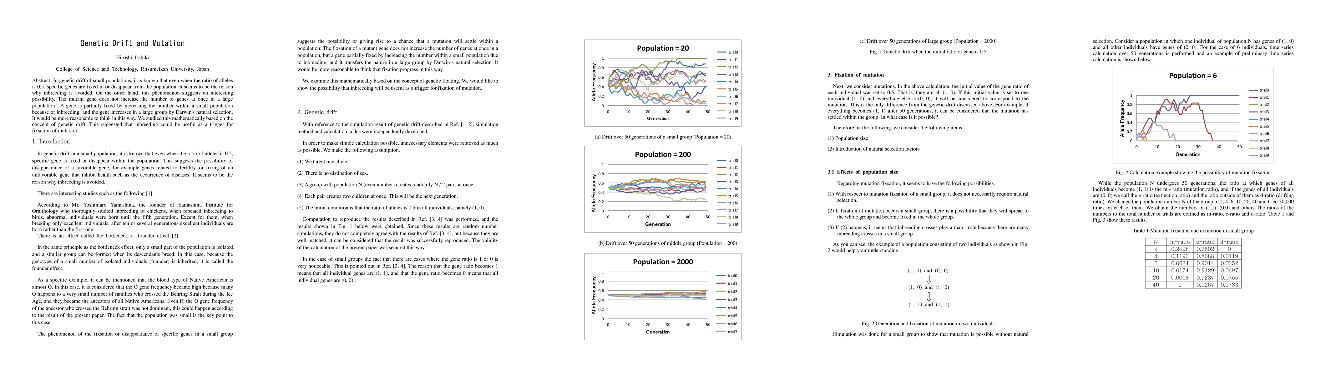 This paper explores how genetic drift in small populations can lead to the fixation or disappearance of alleles, even when their initial ratio is 50:50. It suggests that inbreeding may serve as a catalyst for mutation fixation, with small populations initially favoring certain genes, which then spread through natural selection in larger groups.