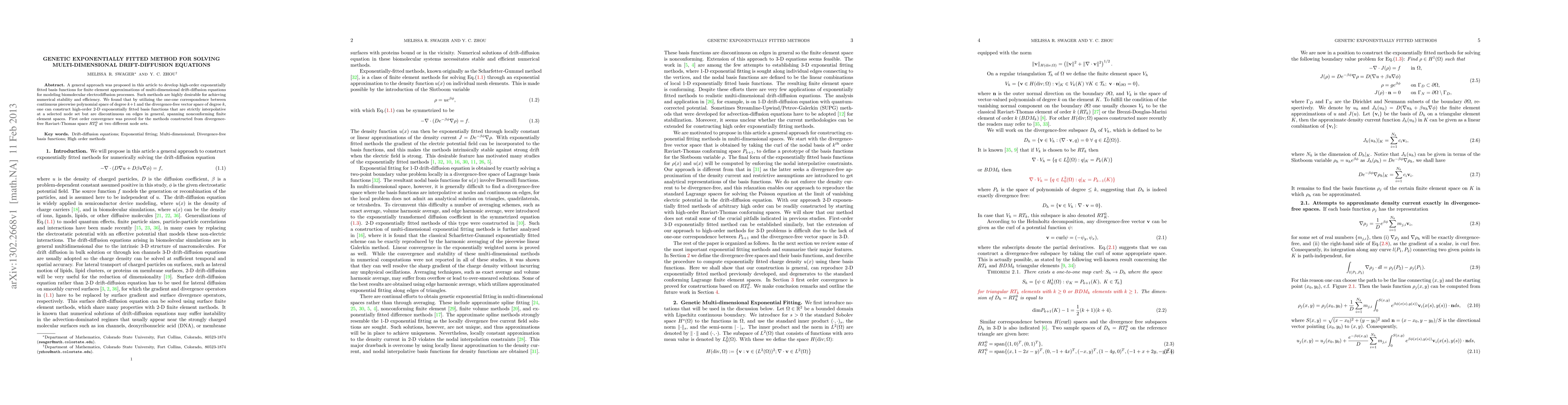 A general approach was proposed in this article to develop high-order exponentially fitted basis functions for finite element approximations of multi-dimensional drift-diffusion equations for modeling biomolecular electrodiffusion processes. Such methods are highly desirable for achieving numerical stability and efficiency. We found that by utilizing the one-one correspondence between continuous piecewise polynomial space of degree $k+1$ and the divergence-free vector space of degree $k$, one can construct high-order 2-D exponentially fitted basis functions that are strictly interpolative at a selected node set but are discontinuous on edges in general, spanning nonconforming finite element spaces. First order convergence was proved for the methods constructed from divergence-free Raviart-Thomas space $RT_0^0$ at two different node sets