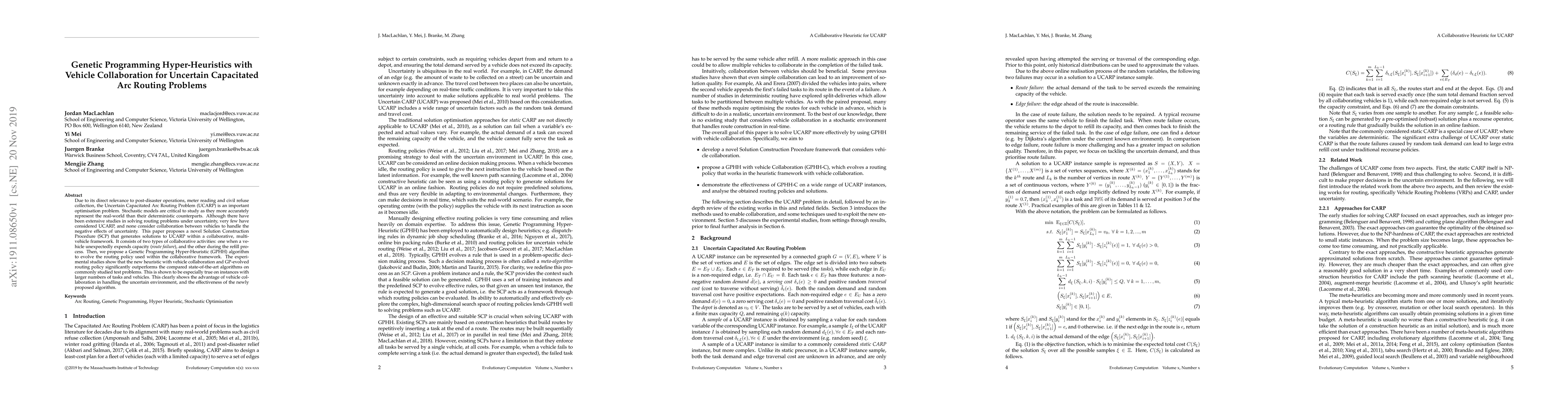 Due to its direct relevance to post-disaster operations, meter reading and civil refuse collection, the Uncertain Capacitated Arc Routing Problem (UCARP) is an important optimisation problem. Stochastic models are critical to study as they more accurately represent the real-world than their deterministic counterparts. Although there have been extensive studies in solving routing problems under uncertainty, very few have considered UCARP, and none consider collaboration between vehicles to handle the negative effects of uncertainty. This paper proposes a novel Solution Construction Procedure (SCP) that generates solutions to UCARP within a collaborative, multi-vehicle framework. It consists of two types of collaborative activities: one when a vehicle unexpectedly expends capacity (\emph{route failure}), and the other during the refill process. Then, we propose a Genetic Programming Hyper-Heuristic (GPHH) algorithm to evolve the routing policy used within the collaborative framework. The experimental studies show that the new heuristic with vehicle collaboration and GP-evolved routing policy significantly outperforms the compared state-of-the-art algorithms on commonly studied test problems. This is shown to be especially true on instances with larger numbers of tasks and vehicles. This clearly shows the advantage of vehicle collaboration in handling the uncertain environment, and the effectiveness of the newly proposed algorithm.