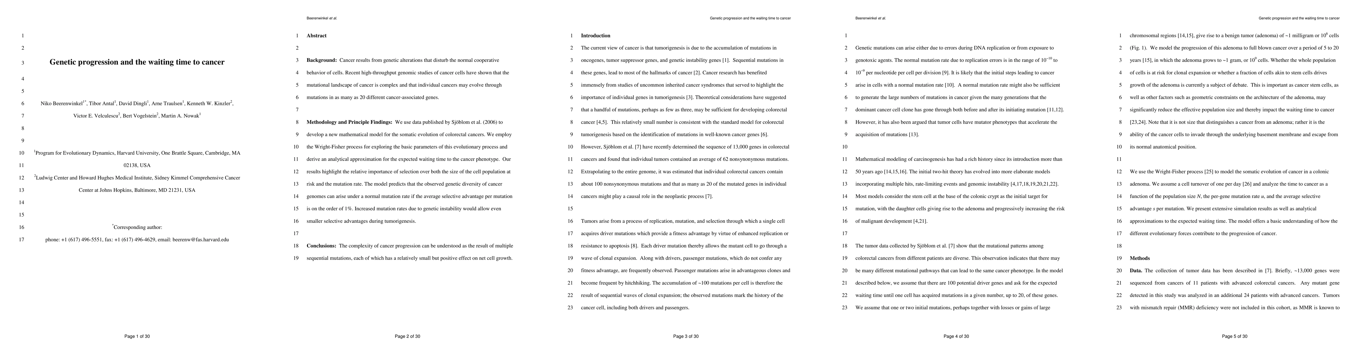 A mathematical model predicts that even small selective advantages can lead to cancer progression under normal mutation rates, highlighting the complexity of cancer evolution. The model suggests that increased genetic instability can accelerate tumorigenesis.