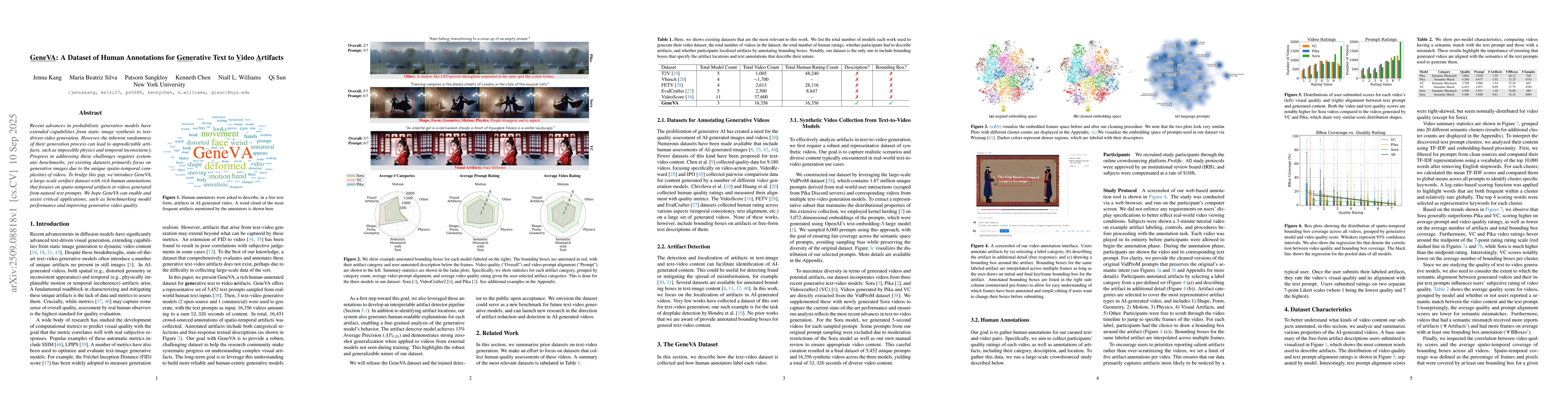 Recent advances in probabilistic generative models have extended capabilities from static image synthesis to text-driven video generation. However, the inherent randomness of their generation process can lead to unpredictable artifacts, such as impossible physics and temporal inconsistency. Progress in addressing these challenges requires systematic benchmarks, yet existing datasets primarily focus on generative images due to the unique spatio-temporal complexities of videos. To bridge this gap, we introduce GeneVA, a large-scale artifact dataset with rich human annotations that focuses on spatio-temporal artifacts in videos generated from natural text prompts. We hope GeneVA can enable and assist critical applications, such as benchmarking model performance and improving generative video quality.
