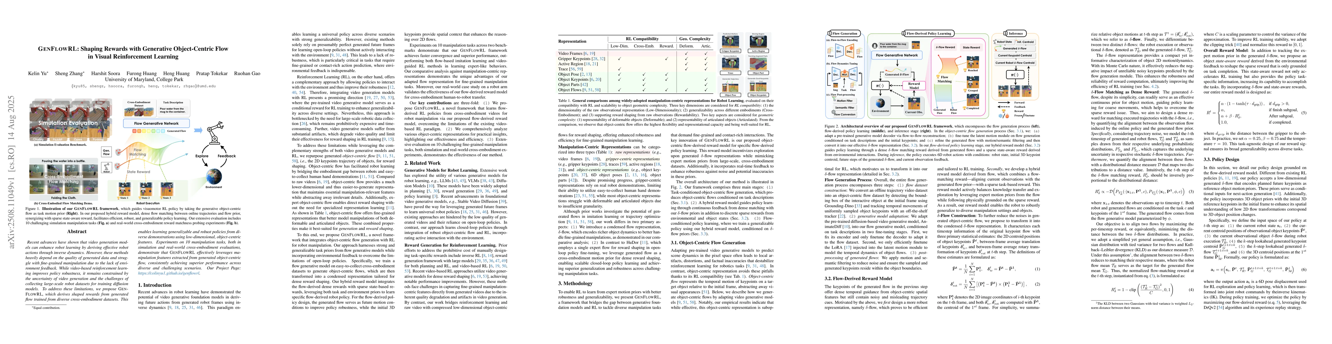 Recent advances have shown that video generation models can enhance robot learning by deriving effective robot actions through inverse dynamics. However, these methods heavily depend on the quality of generated data and struggle with fine-grained manipulation due to the lack of environment feedback. While video-based reinforcement learning improves policy robustness, it remains constrained by the uncertainty of video generation and the challenges of collecting large-scale robot datasets for training diffusion models. To address these limitations, we propose GenFlowRL, which derives shaped rewards from generated flow trained from diverse cross-embodiment datasets. This enables learning generalizable and robust policies from diverse demonstrations using low-dimensional, object-centric features. Experiments on 10 manipulation tasks, both in simulation and real-world cross-embodiment evaluations, demonstrate that GenFlowRL effectively leverages manipulation features extracted from generated object-centric flow, consistently achieving superior performance across diverse and challenging scenarios. Our Project Page: https://colinyu1.github.io/genflowrl