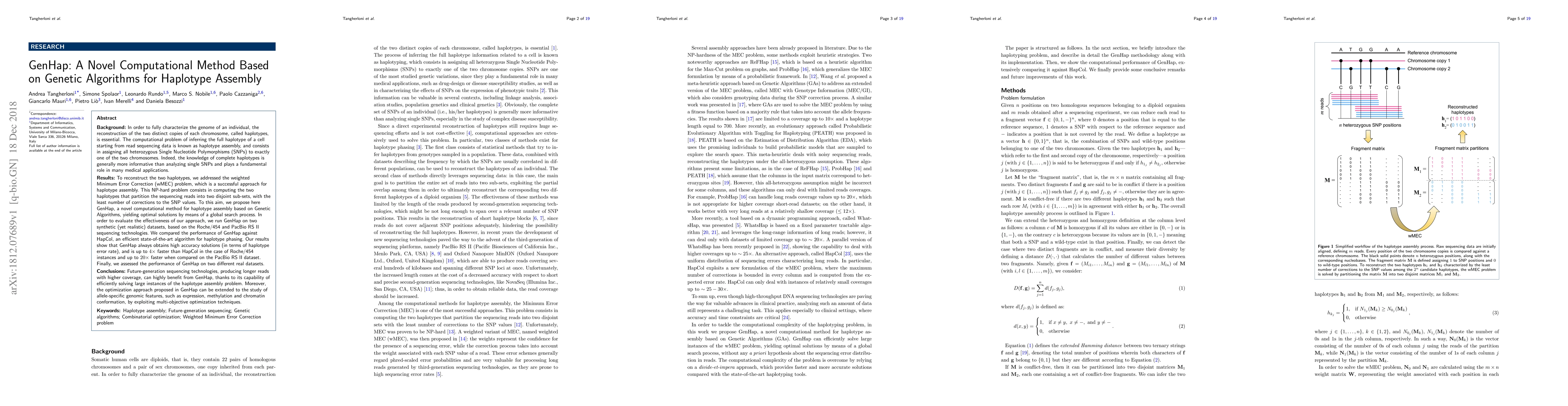 GenHap is a novel computational method based on Genetic Algorithms for haplotype assembly, addressing the weighted Minimum Error Correction problem to reconstruct haplotypes from sequencing reads. Comparative evaluations show GenHap achieves high accuracy and is significantly faster than the state-of-the-art HapCol algorithm, especially with longer reads from next-generation sequencing technologies.