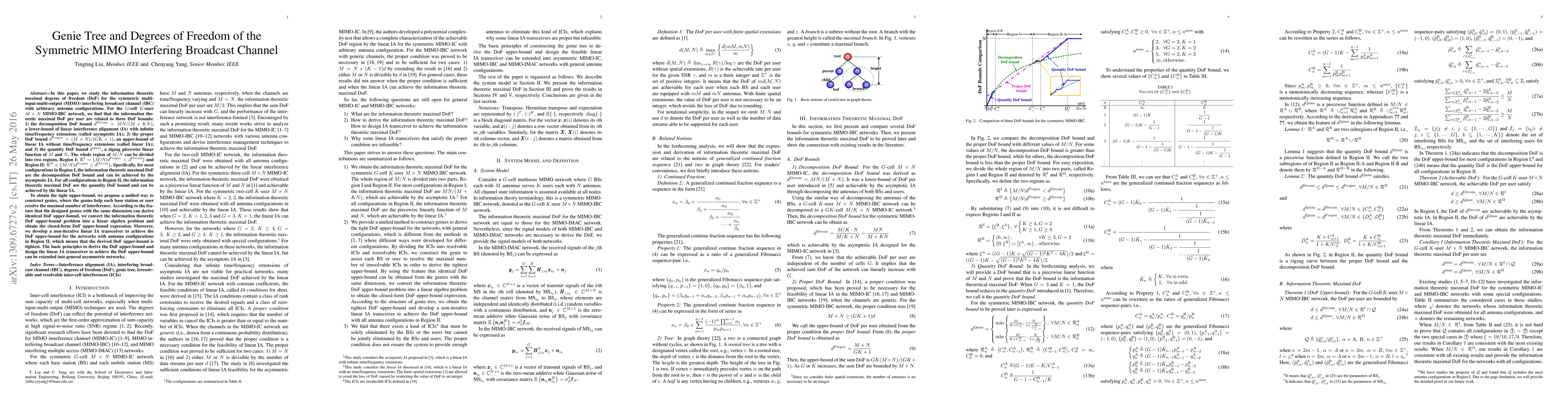 In this paper, we study the information theoretic maximal degrees of freedom (DoF) for the symmetric multi-input-multi-output (MIMO) interfering broadcast channel (IBC) with arbitrary antenna configurations. For the G-cell K-user MXN MIMO-IBC network, we find that the information theoretic maximal DoF per user are related to three DoF bounds: 1) the decomposition DoF bound d^{Decom}=MN/(M+KN), a lower-bound of linear interference alignment (IA) with infinite time/frequency extensions (called asymptotic IA); 2) the proper DoF bound d^{Proper}=(M+N)/(GK+1), an upper-bound of linear IA without time/frequency extensions (called linear IA); and 3) the quantity DoF bound d^{Quan}, a zigzag piecewise linear function of M and N. The whole region of M/N can be divided into two regions, Region I and Region II. Specifically, for most configurations in Region I, the information theoretic maximal DoF are the decomposition DoF bound and can be achieved by the asymptotic IA. For all configurations in Region II, the information theoretic maximal DoF are the quantity DoF bound and can be achieved by the linear IA. To obtain the tight upper-bound, we propose a unified way to construct genies, where the genies help each base station or user resolve the maximal number of interference. According to the feature that the designed genies with the same dimension can derive identical DoF upper-bound, we convert the information theoretic DoF upper-bound problem into a linear algebra problem and obtain the closed-form DoF upper-bound expression. Moreover, we develop a non-iterative linear IA transceiver to achieve the DoF upper-bound for the networks with antenna configurations in Region II, which means that the derived DoF upper-bound is tightest. The basic principles to derive the DoF upper-bound and design the linear IA transceiver to achieve the DoF upper-bound can be extended into general asymmetric networks.