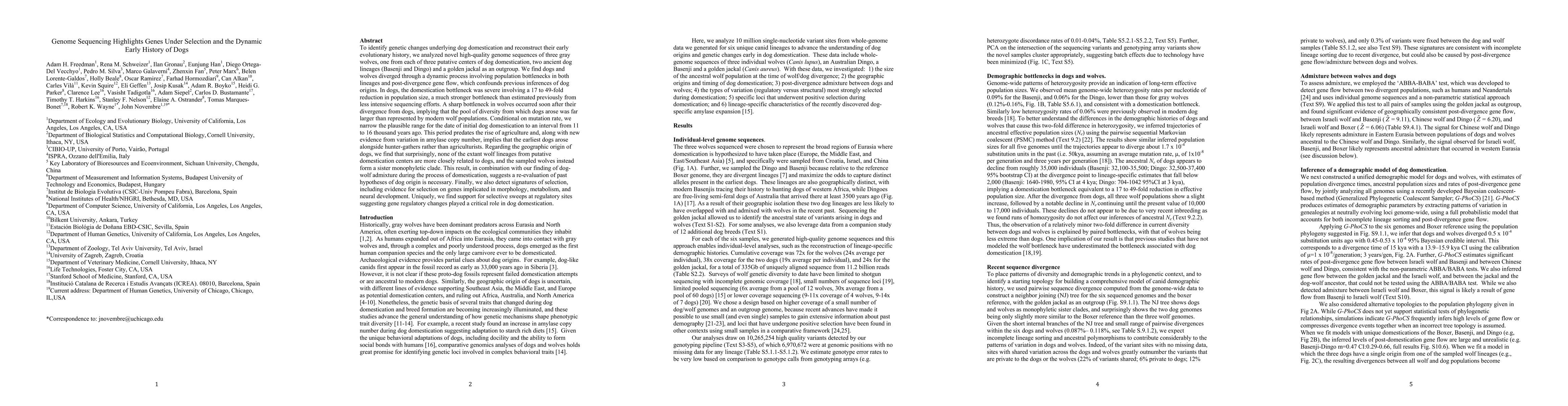 The study sequenced genomes of gray wolves, ancient dogs, and a golden jackal, revealing a severe domestication bottleneck in dogs and a subsequent wolf population decline. The research narrows the dog domestication period to 11-16 thousand years ago, suggesting early dogs were associated with hunter-gatherers. Surprisingly, none of the tested wolf lineages from proposed domestication centers are closely related to dogs, challenging previous origin hypotheses. The findings also highlight selection signatures in genes affecting morphology, metabolism, and neural development, with regulatory sites undergoing selective sweeps, indicating crucial gene regulatory changes in dog domestication.