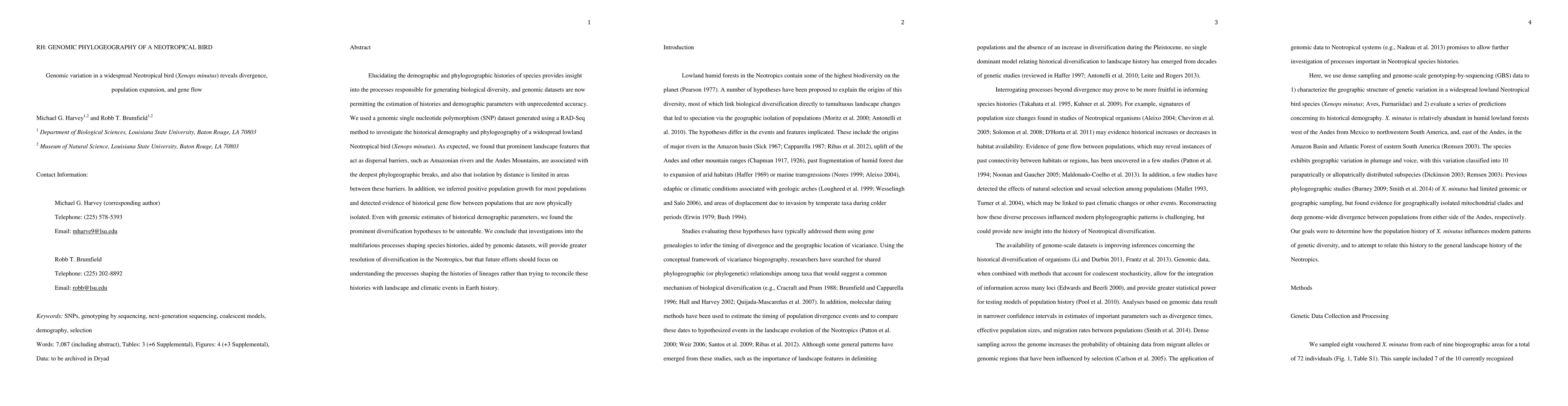 This study uses genomic analysis to reveal the historical migration patterns of Xenops minutus, a widespread Neotropical bird species, showing evidence of population expansion and gene flow despite geographical barriers.