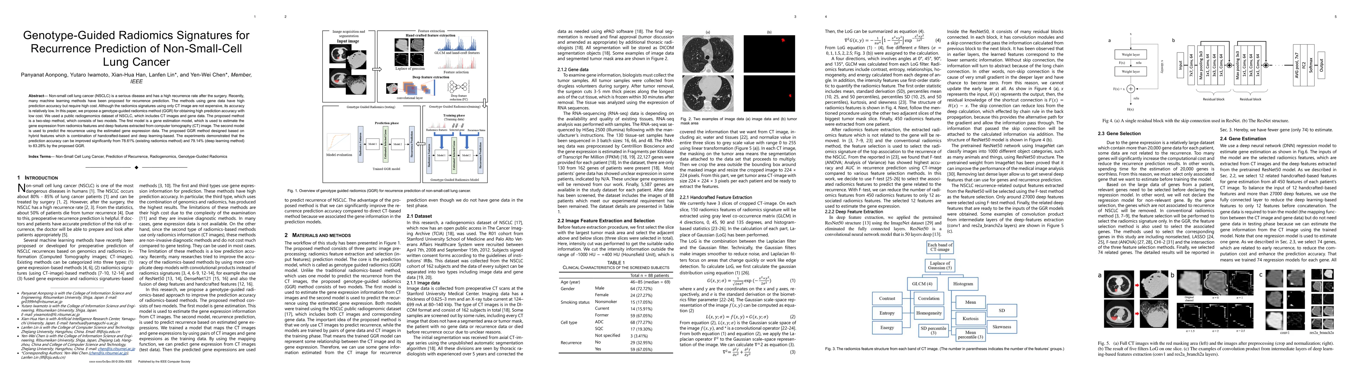 This paper proposes a genotype-guided radiomics method (GGR) to predict recurrence in non-small-cell lung cancer (NSCLC) with high accuracy at a lower cost. The GGR method combines radiomics features from CT images with gene data to improve prediction accuracy from 78.61% to 83.28%.