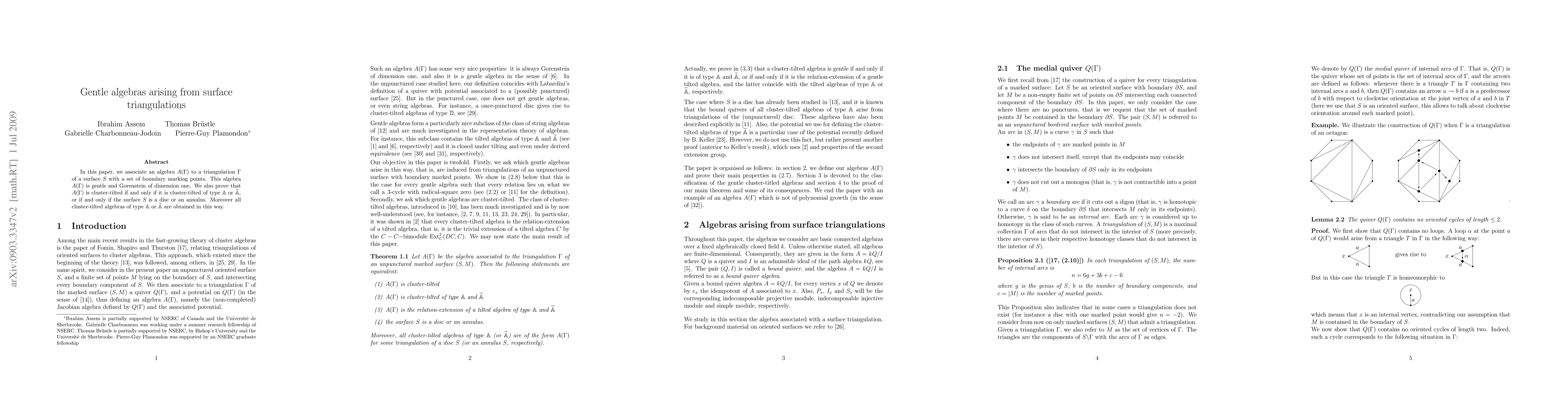 In this paper, we associate an algebra A(T) to a triangulation T of a surface S with a set of boundary marking points. This algebra A(T) is gentle and Gorenstein of dimension one. We also prove that A(T) is cluster-tilted if and only if it is cluster-tilted of type A or A tilde, or if and only if the surface S is a disc or an annulus. Moreover all cluster-tilted algebras of type A or A tilde are obtained in this way.
