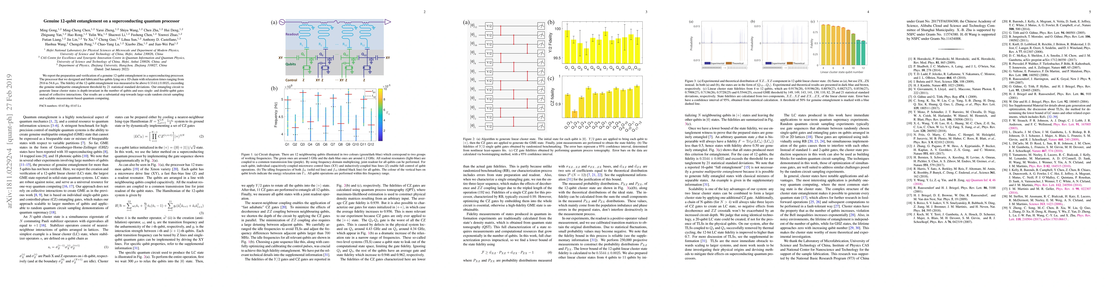 This paper reports the successful preparation and verification of a genuine 12-qubit entanglement in a superconducting quantum processor, achieving a fidelity above the multipartite entanglement threshold by a significant margin. The processor uses depth-invariant entangling circuits with single- and double-qubit gates, paving the way for scalable measurement-based quantum computing.