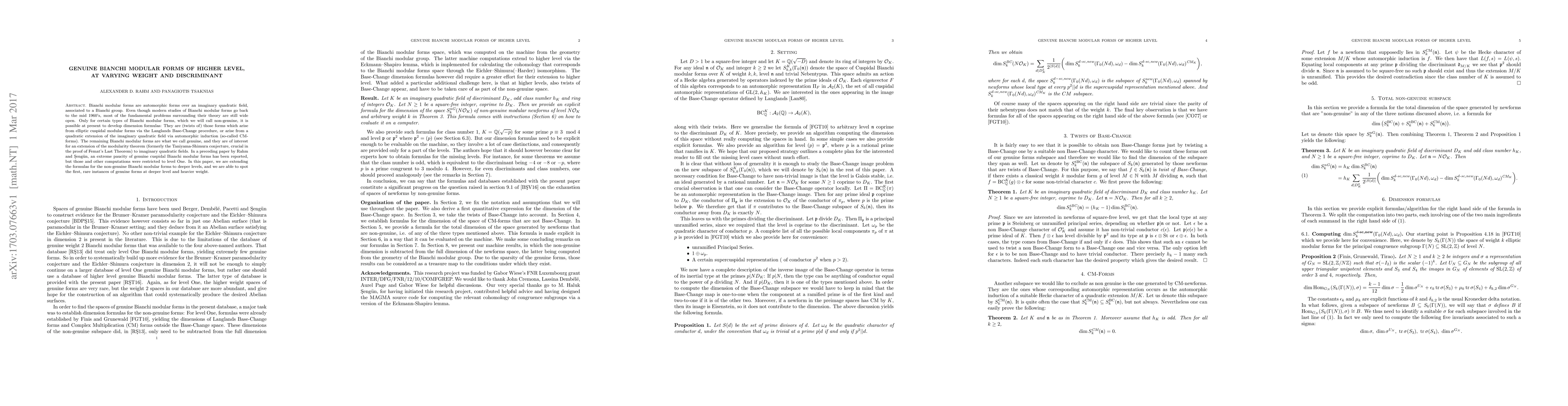 Bianchi modular forms are automorphic forms over an imaginary quadratic field, associated to a Bianchi group. Even though modern studies of Bianchi modular forms go back to the mid 1960's, most of the fundamental problems surrounding their theory are still wide open. Only for certain types of Bianchi modular forms, which we will call non-genuine, it is possible at present to develop dimension formulas: They are (twists of) those forms which arise from elliptic cuspidal modular forms via the Langlands Base-Change procedure, or arise from a quadratic extension of the imaginary quadratic field via automorphic induction (so-called CM-forms). The remaining Bianchi modular forms are what we call genuine, and they are of interest for an extension of the modularity theorem (formerly the Taniyama-Shimura conjecture, crucial in the proof of Femat's Last Theorem) to imaginary quadratic fields. In a preceding paper by Rahm and Sengun, an extreme paucity of genuine cuspidal Bianchi modular forms has been reported, but those and other computations were restricted to level One. In this paper, we are extending the formulas for the non-genuine Bianchi modular forms to deeper levels, and we are able to spot the first, rare instances of genuine forms at deeper level and heavier weight.