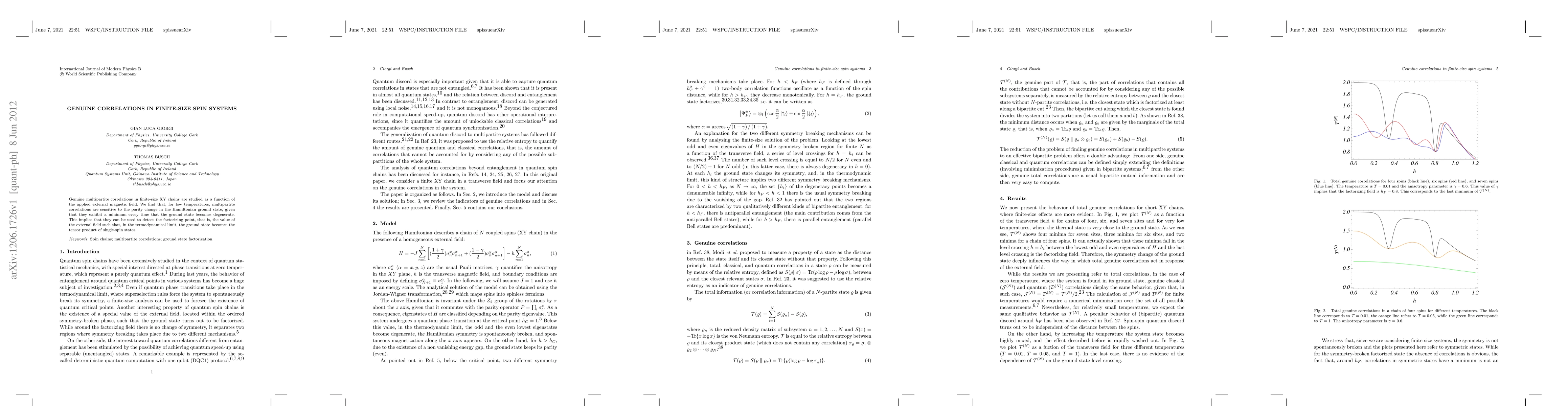 Genuine multipartite correlations in finite-size XY chains are studied as a function of the applied external magnetic field. We find that, for low temperatures, multipartite correlations are sensitive to the parity change in the Hamiltonian ground state, given that they exhibit a minimum every time that the ground state becomes degenerate. This implies that they can be used to detect the factorizing point, that is, the value of the external field such that, in the termodynamical limit, the ground state becomes the tensor product of single-spin states.