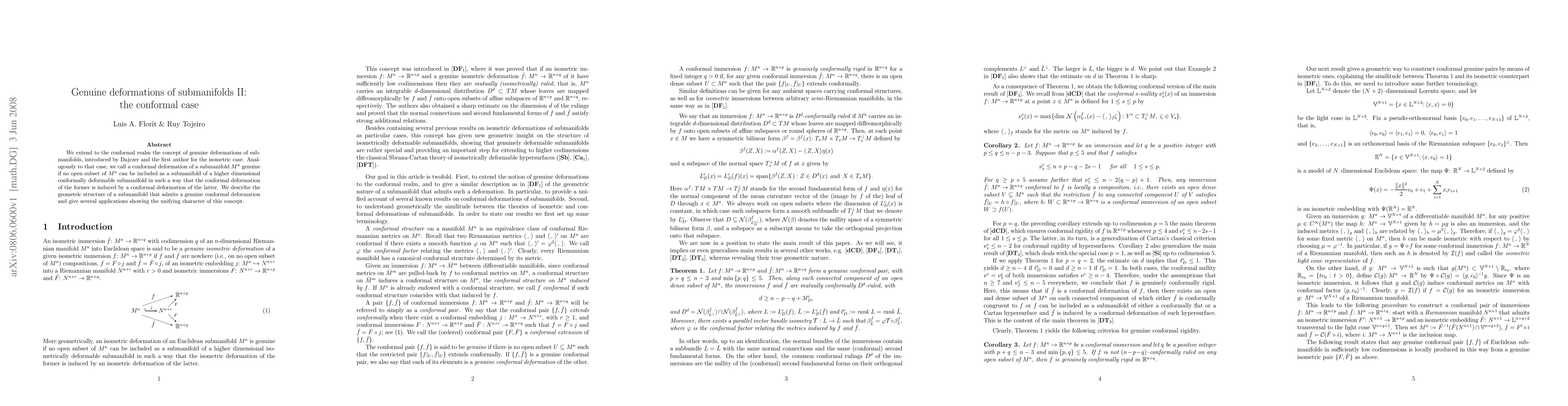 We extend to the conformal realm the concept of genuine deformations of submanifolds, introduced by Dajczer and the first author for the isometric case. Analogously to that case, we call a conformal deformation of a submanifold $M^n$ genuine if no open subset of $M^n$ can be included as a submanifold of a higher dimensional conformally deformable submanifold in such a way that the conformal deformation of the former is induced by a conformal deformation of the latter. We describe the geometric structure of a submanifold that admits a genuine conformal deformation and give several applications showing the unifying character of this concept.