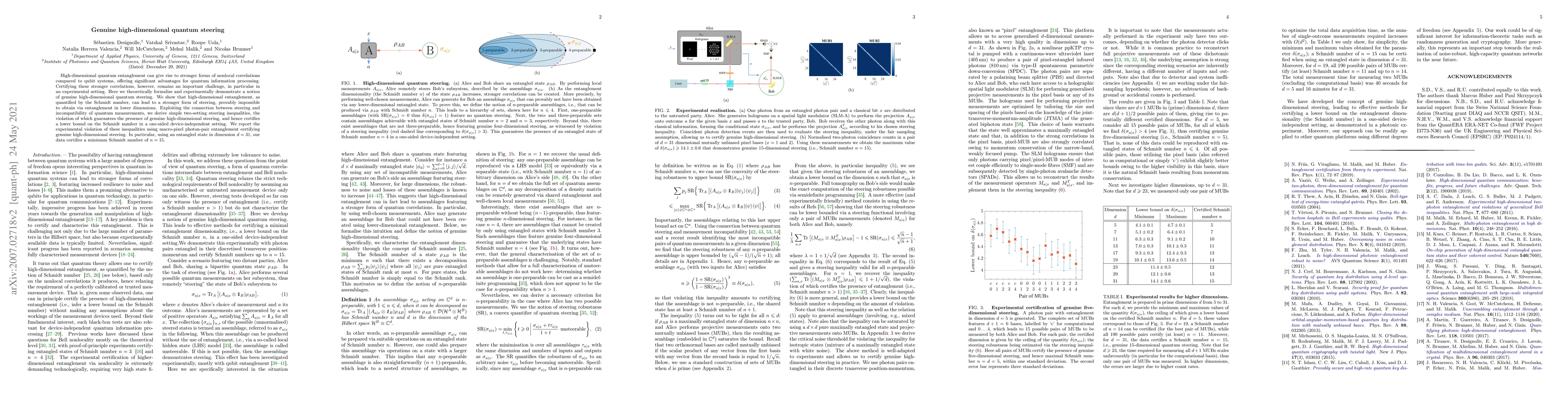 This paper theoretically formalizes and experimentally demonstrates genuine high-dimensional quantum steering, showing that high-dimensional entanglement can lead to stronger steering than lower-dimensional systems. The authors derive steering inequalities that certify high-dimensional quantum steering and report experimental violation of these inequalities using entangled photon pairs, certifying a minimum Schmidt number of 15.