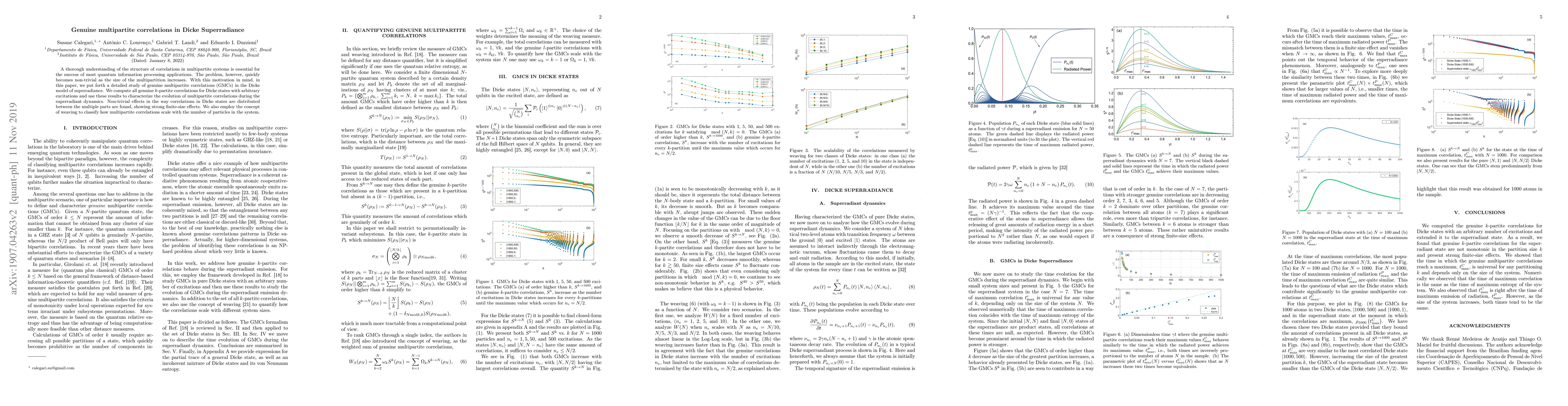 This paper investigates genuine multipartite correlations (GMCs) within the Dicke model of superradiance, revealing non-trivial distribution effects and finite-size influences. The study computes GMCs for various excitations and analyzes their evolution during superradiant dynamics, employing the concept of weaving to understand scaling with particle number.