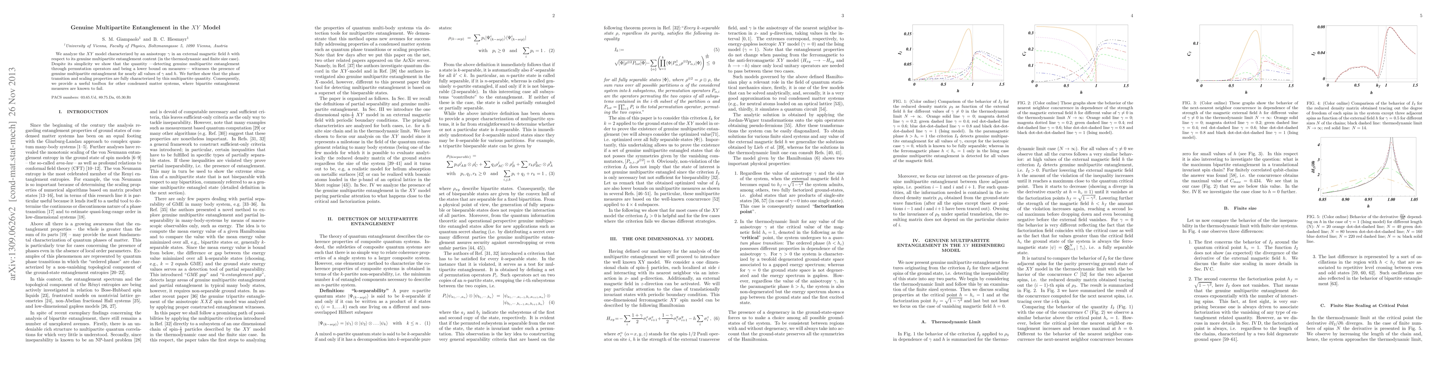 The research demonstrates that the XY model, despite its simplicity, exhibits genuine multipartite entanglement for almost all values of γ and h, offering a novel perspective on entanglement in condensed matter systems and providing a useful toolbox for characterizing phase transitions.