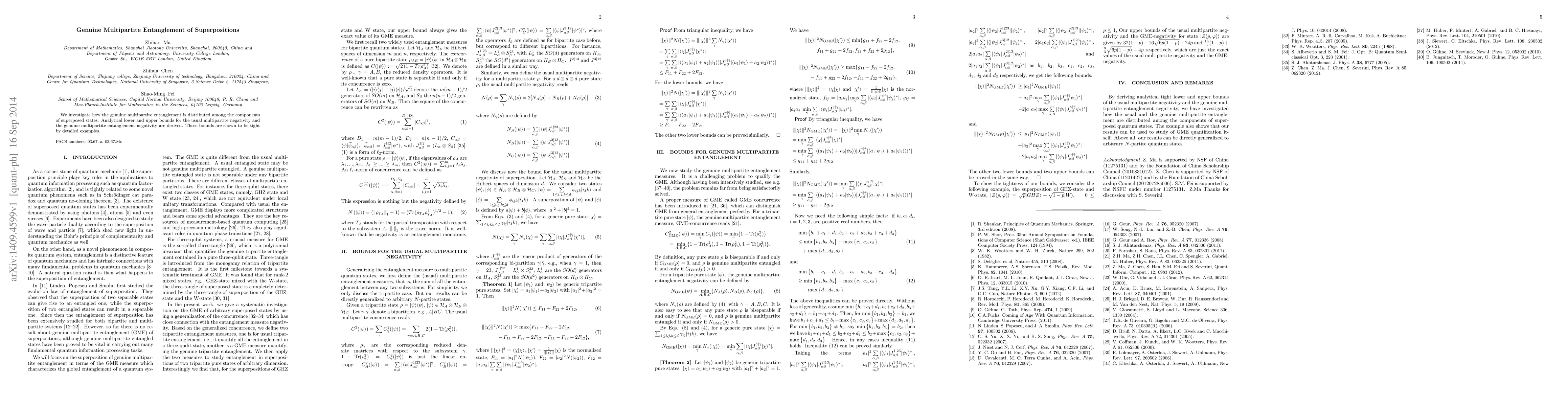 The paper introduces a method for bounding both usual multipartite negativity and genuine multipartite entanglement negativity, providing a comprehensive framework for analyzing entanglement in superposition states.