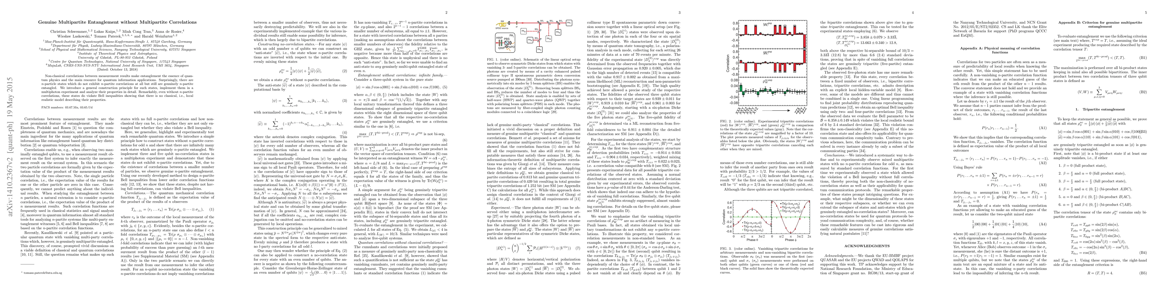 This paper presents a construction method for genuinely $n$-partite entangled states that lack $n$-partite correlations, demonstrated through a multiphoton experiment. Despite the absence of $n$-partite correlations, these states violate Bell inequalities, confirming the non-classical nature of quantum mechanics.